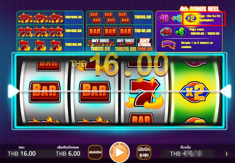 เกมสล็อตที่จะทำให้คุณได้รับเงินรางวัลบ่อยที่สุด เพราะเป็นเกมสล็อตที่มีโบนัสผลคูณของการเดิมพันต่อไลน์ 1 ครั้ง และยังมีรางวัลสำหรับวงล้อที่ 4 ที่ใช้ได้กับโบนัสอัตราต่อรองที่มีผลเท่านั้น ที่สำคัญระหว่างที่ฟรีสปินจะมีโอกาสได้รับการหมุนซ้ำ 1-5 เลยทีเดียวดังนั้นโอกาสที่แจ็คพอตจะแตกง่ายมีสูงแน่นอน